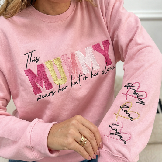 Personalized MAMA Wears Her Heart On Her Sleeve Sweatshirt