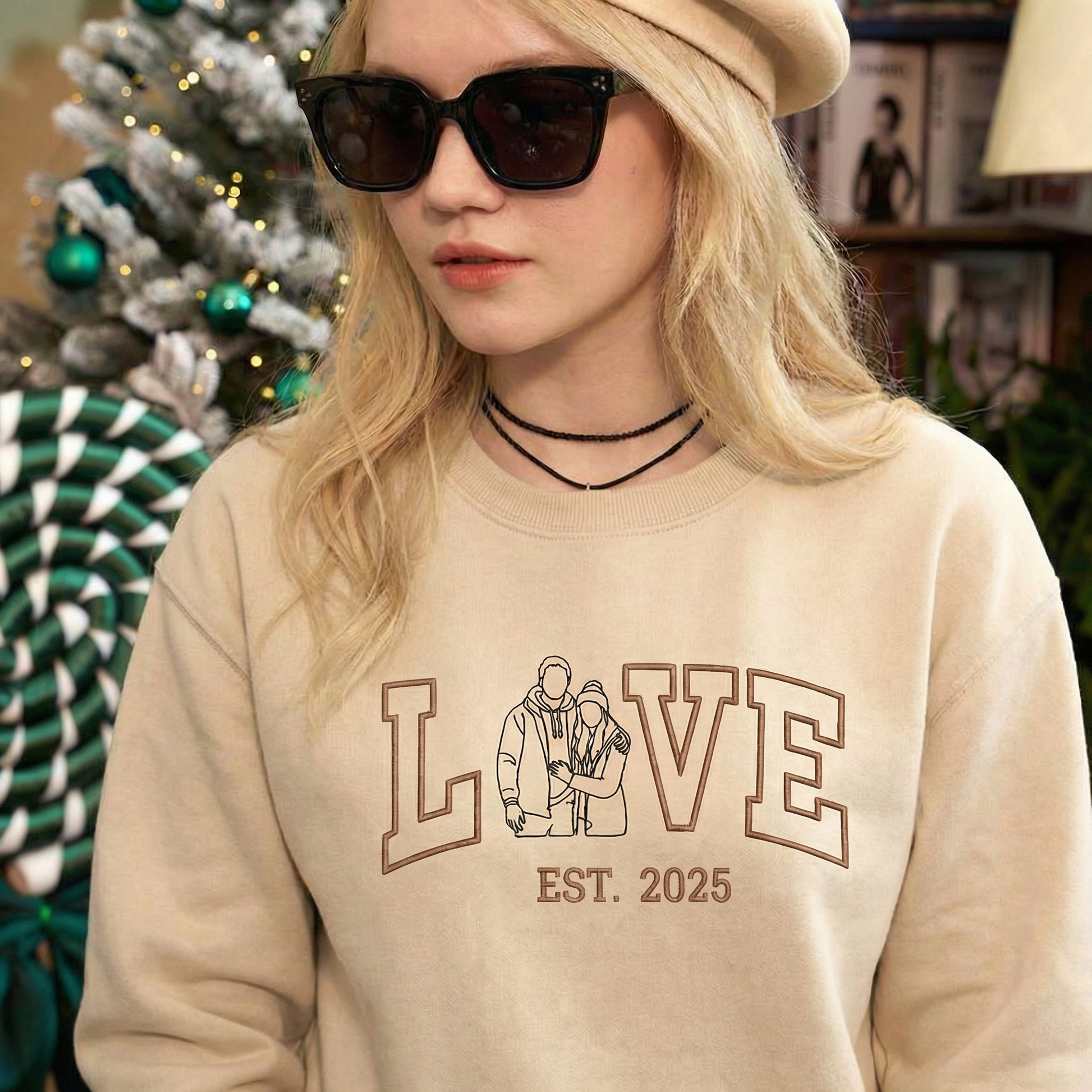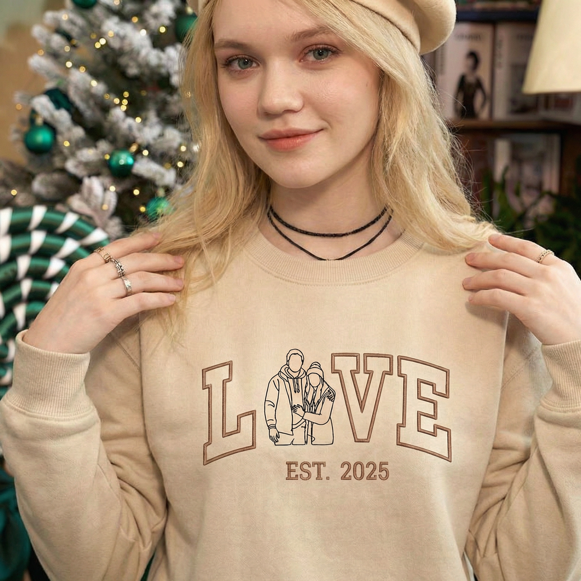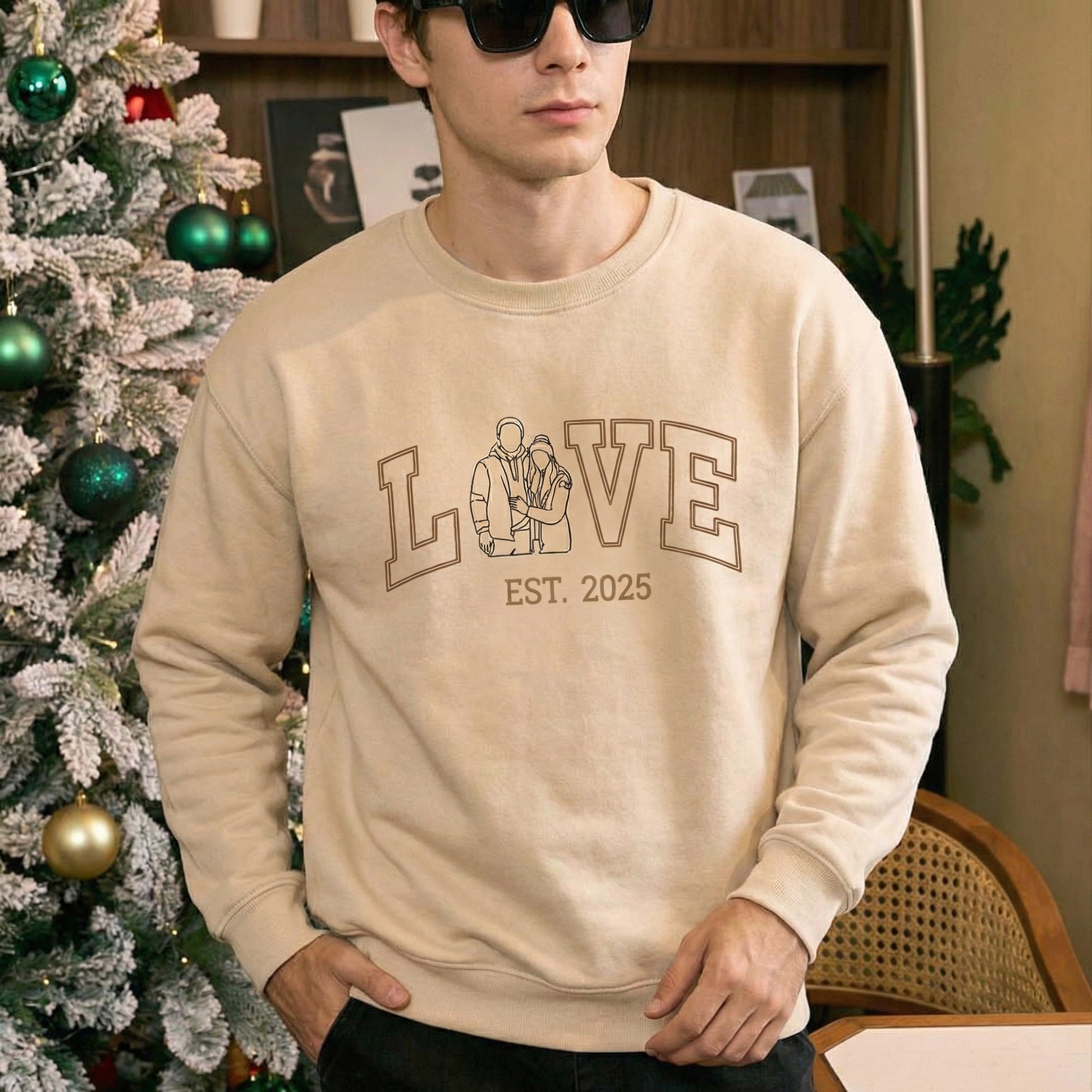 Turn your most cherished moments into a custom embroidered masterpiece. Whether it’s for an anniversary, an engagement, or just because, our personalized sweatshirts let you keep your loved ones close to your heart. Hand-stitched from your favorite photo and customized with your special date, this isn’t just a piece of apparel—it’s a timeless keepsake.